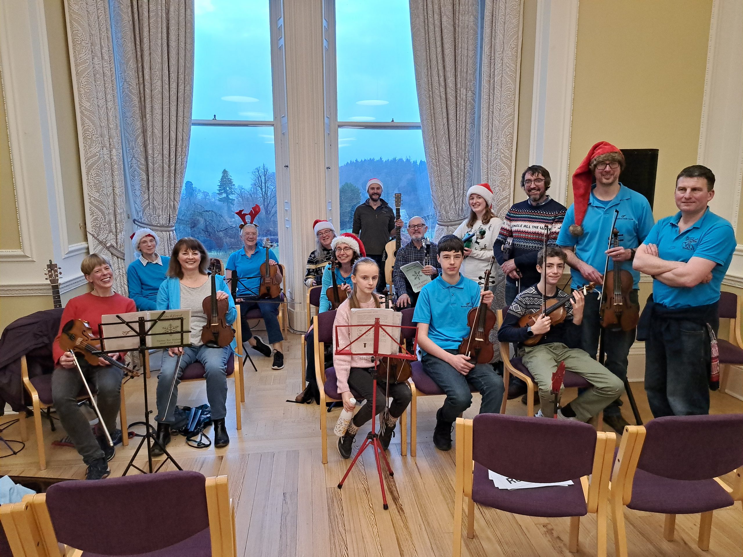 The Blackford Fiddle Group (BFG) is a community music group with members of all ages and abilities. We meet weekly on Fridays at the Moray Institute in Blackford, Perthshire to learn and play traditional music on fiddles and other instruments. BFG is a great place to learn to play the fiddle or other traditional instruments. We offer a supportive environment where everyone can learn at their own pace. We sometimes have experienced tutors who can help you with your technique, mostly we encourage members to help each other. In addition to learning to play, BFG also provides opportunities to perform. We play at ceilidhs, concerts, and other events. This is a great way to share your music with others and to get feedback on your playing. If you are interested in learning to play traditional music in a fun and supportive environment, then the Blackford Fiddle Group is the perfect place for you. Come along to one of our Friday sessions and see for yourself!